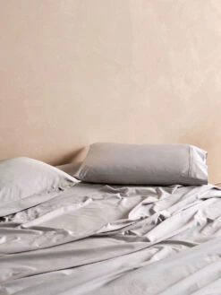 Designed for cots, this two-piece set includes one fitted sheet in pink salt and another in taupe – keeping you well-supplied for those little accidents.
