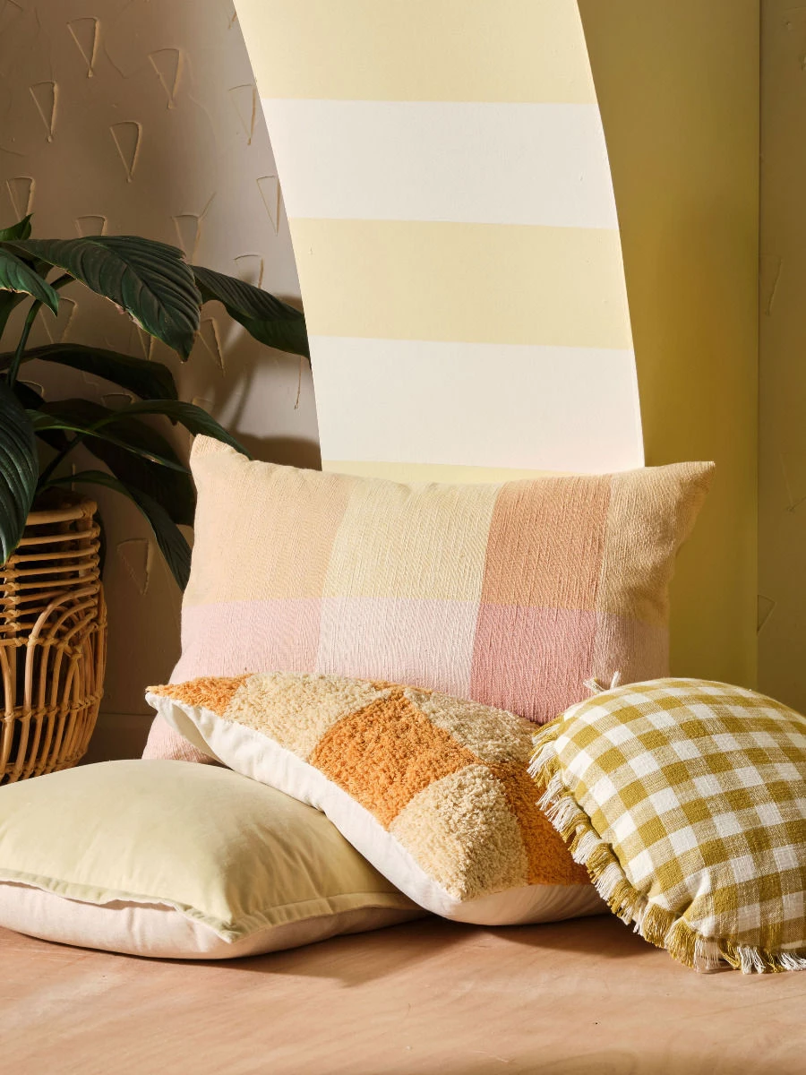 A striking duotone check in seashell, Alia exudes a relaxed vibe for your living area of bedroom.