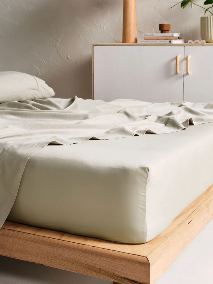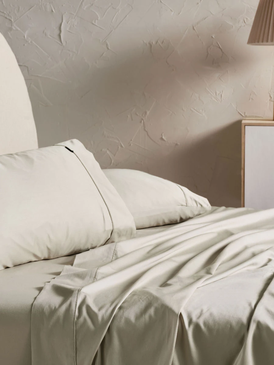 The flat sheet and pillowcases have a cuffed and piped header for a polished finish while the fitted sheet has a generous 50cm wall – perfect for all mattresses.