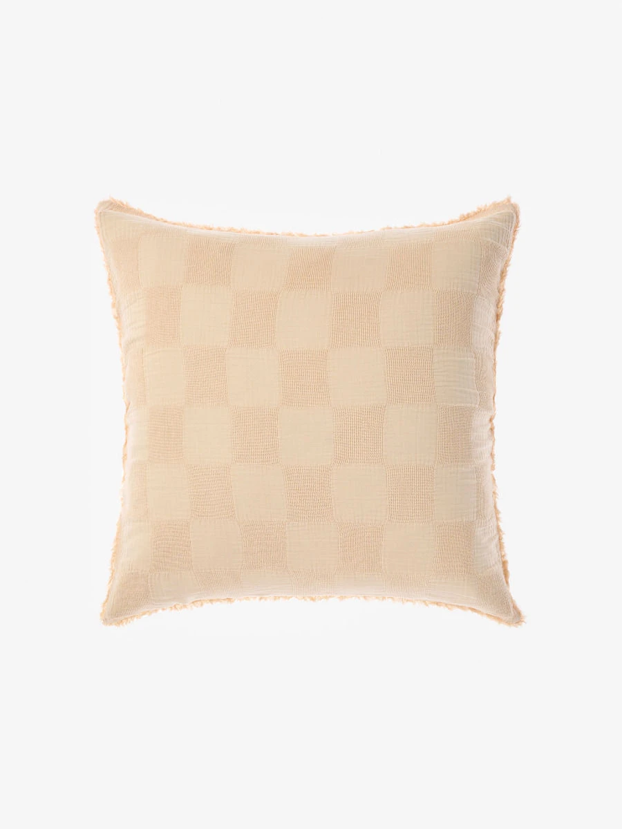A sweet yet subtle checkerboard aesthetic in alluring pale peach, this European pillowcase offers varying scales of woven waffle in the softest cotton voile.