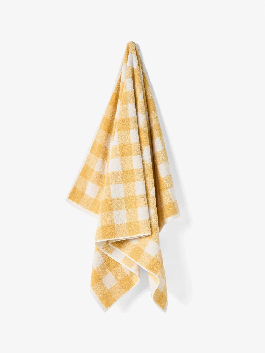 The humble check is made ultra-chic with Flinders Check in honey ? a 630 GSM cotton terry collection of bathroom towels with a washed finish.