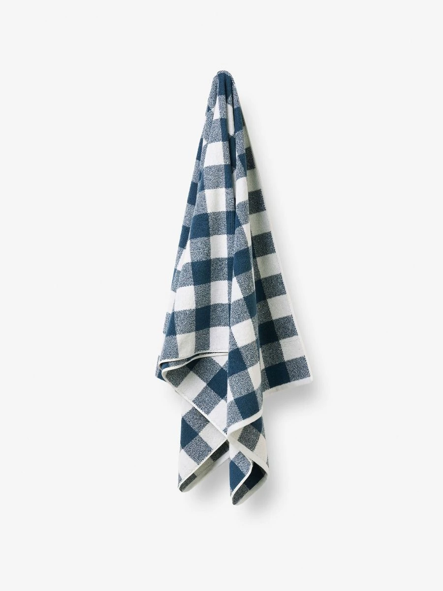 The humble check is made ultra-chic with Flinders Check in navy – a 630 GSM cotton terry collection of bathroom towels with a washed finish.