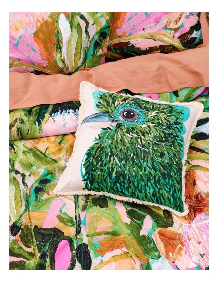 A cheeky kookaburra with a glimmer to its eye, this printed and textured cotton slub cushion complements any of the three quilt cover sets from our Linen House x Grotti Lotti collaboration.