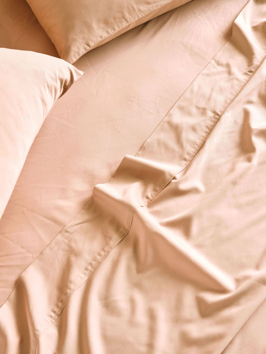 Favourable to allergy sufferers for its antimicrobial properties, this sheet set in pink nude promises a beautiful feel and drape, which launders beautifully and dries fast.