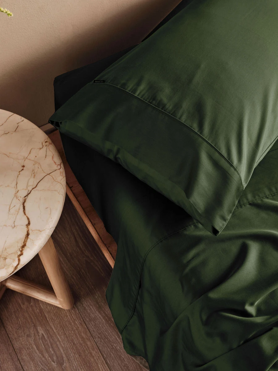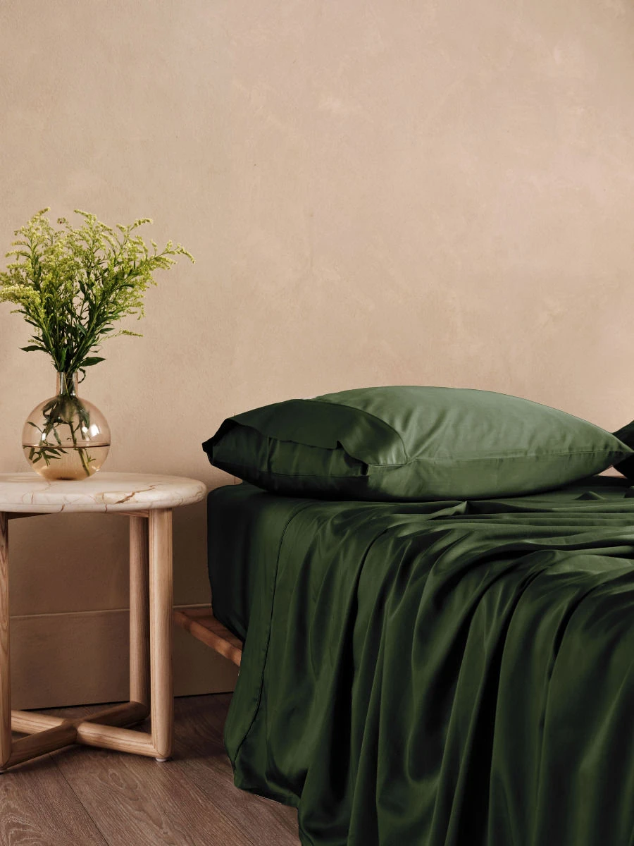 Favourable to allergy sufferers for its antimicrobial properties, this sheet set in pine promises a beautiful feel and drape, which launders beautifully and dries fast.