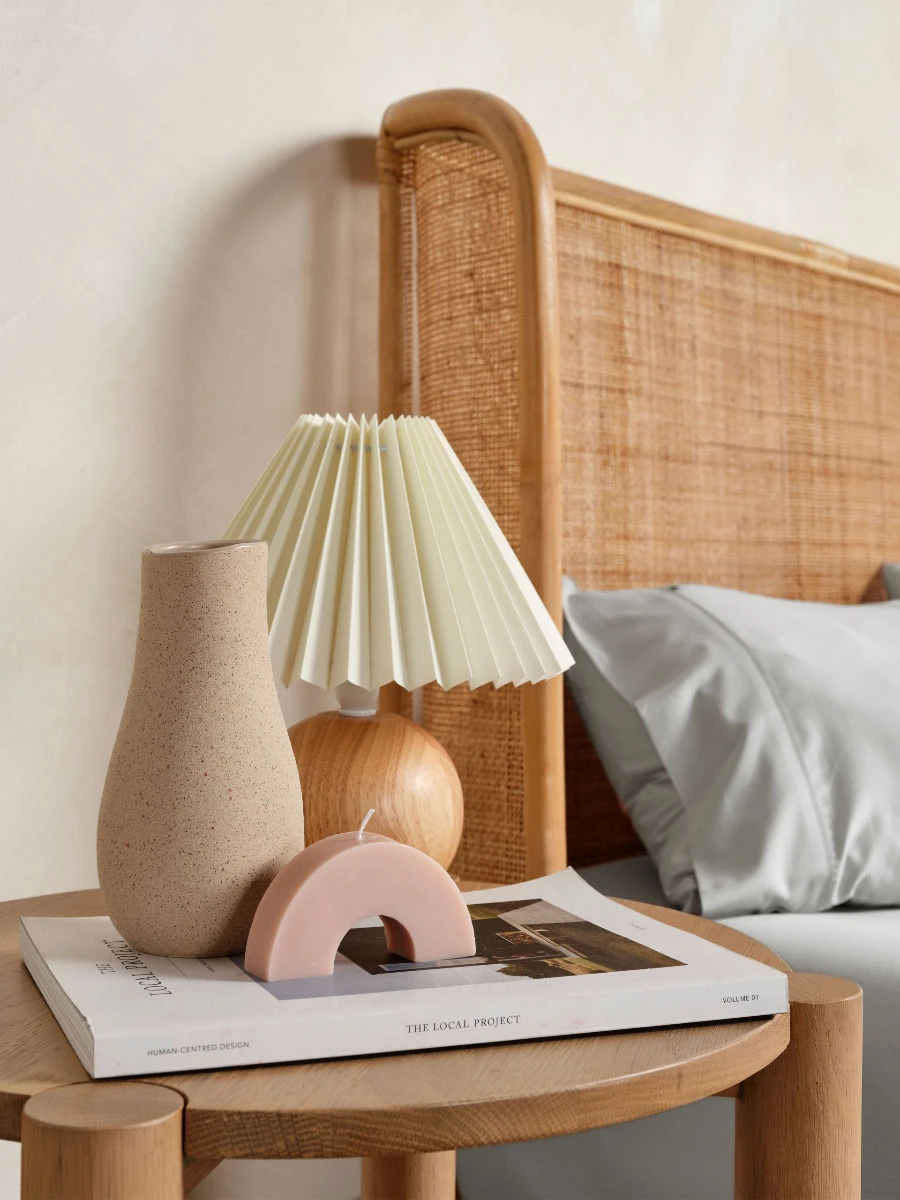 Nara’s fitted sheet enjoys a 50cm wall while the flat sheet and pillowcases are both cuffed and piped for a dapper finish.