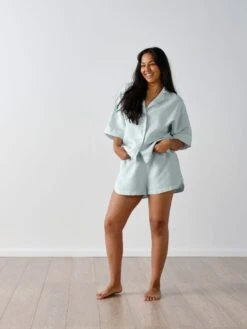 With a new, oversized fit from our previous shirt style, this short-sleeved and cropped shirt includes a collar and buttons, while the fabric will soften more so over time – perfect for everyday wear, sleepwear or an all-day lounge-around.
