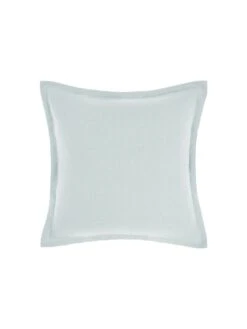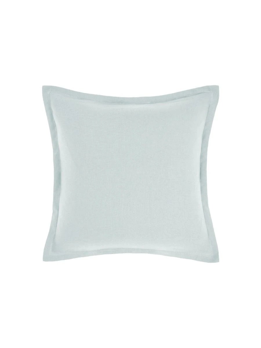 This cushion in sky is linen on both sides and is trimmed with elegant tailored edges.