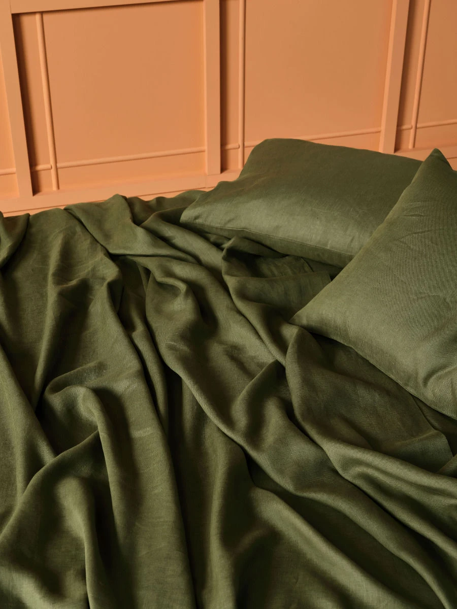 The timeless appeal of linen brings a rustic aesthetic to modern living. With its vintage look and drape, our Nimes sheet set in moss is suitable all-year-round.