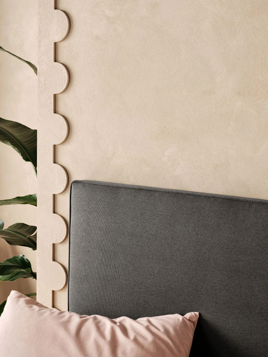 Instil a contemporary, soft style within your bedroom with Robin, a bedhead that comes in an upholstered slate fabric with cord piping for a smart finish.
