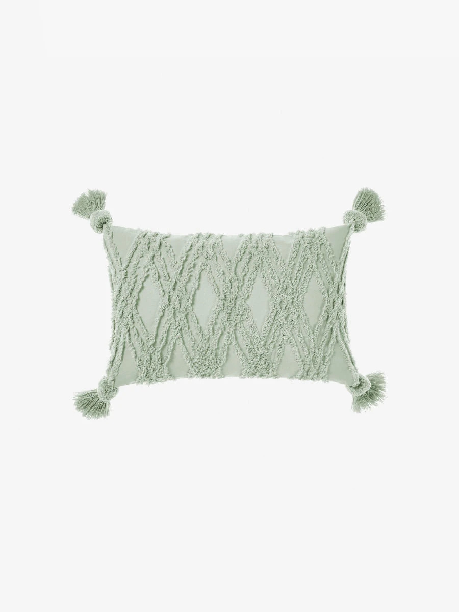 A distinctive geometric pattern, Solange in mint is complemented with stylish corner tassels – a quintessential cushion for your bedroom or living space.
