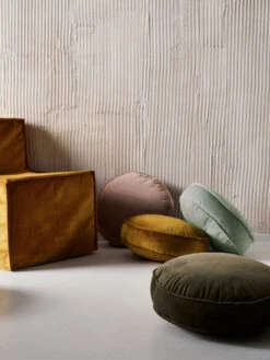 Made from a luxe velvet fabric, this perfectly soft, textured round cushion offers a generous gusset for added comfort and cord piping trims.